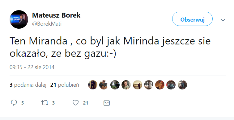 Ten Miranda , co był jak Mirinda jeszcze się okazało, ze bez gazu:-)
